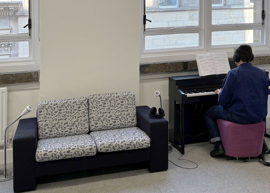 The new Music Library features state-of-the-art facilities, including walk-in recording studios, pianos and other instruments, as well as podcasting equipment, all free for public use. Opening the Book’s layout design facilitates a regular programme of events and workshops, from song writing to open mic events and opportunities to drop in and play instruments. The recording studios are kitted out with instruments, microphones, and computers that can be used to record songs and podcasts and host instrument taster sessions.