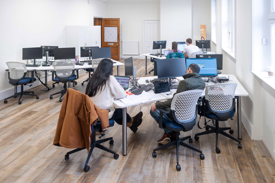 The 4th floor of Boots Library is the most heavily used computer space in the university. The brief was to raise the quality of the student experience while maintaining the required number of computers and supporting 24/7 opening.