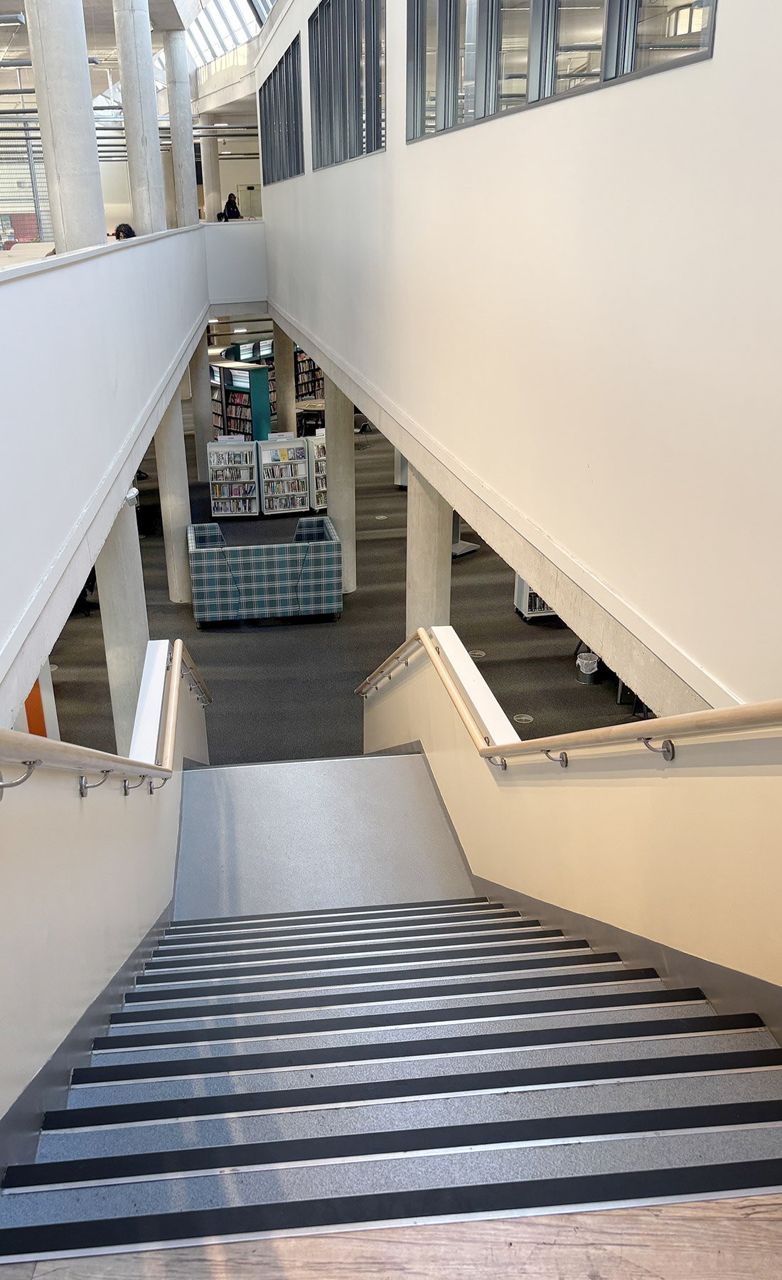 In the main library space we used a more radical and intuitive presentation than lots of directional signs. This is particularly relevant to visitors who are neuro-divergent, those whose first language is not English, and older folk with memory problems. But it actually benefits all customers as there is lots of evidence that most people, whatever their language or mental state, do not read signs.